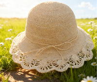 Eco Friendly Sustainable Handmade Natural Raffia Woven Lightweight Foldable Breathable Outdoor Beach Raffia Bucket Hat