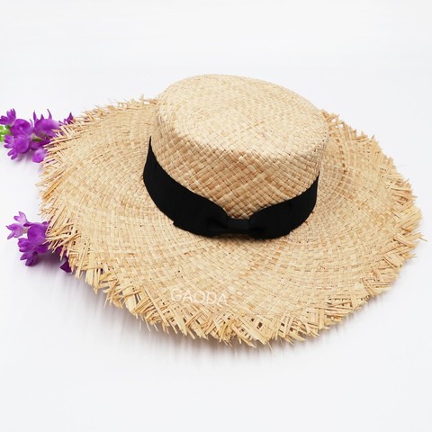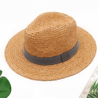 100% raffia קש צמה נייר חיטה ספארי כובע שמש קישוט מותאם אישית כובע fedora